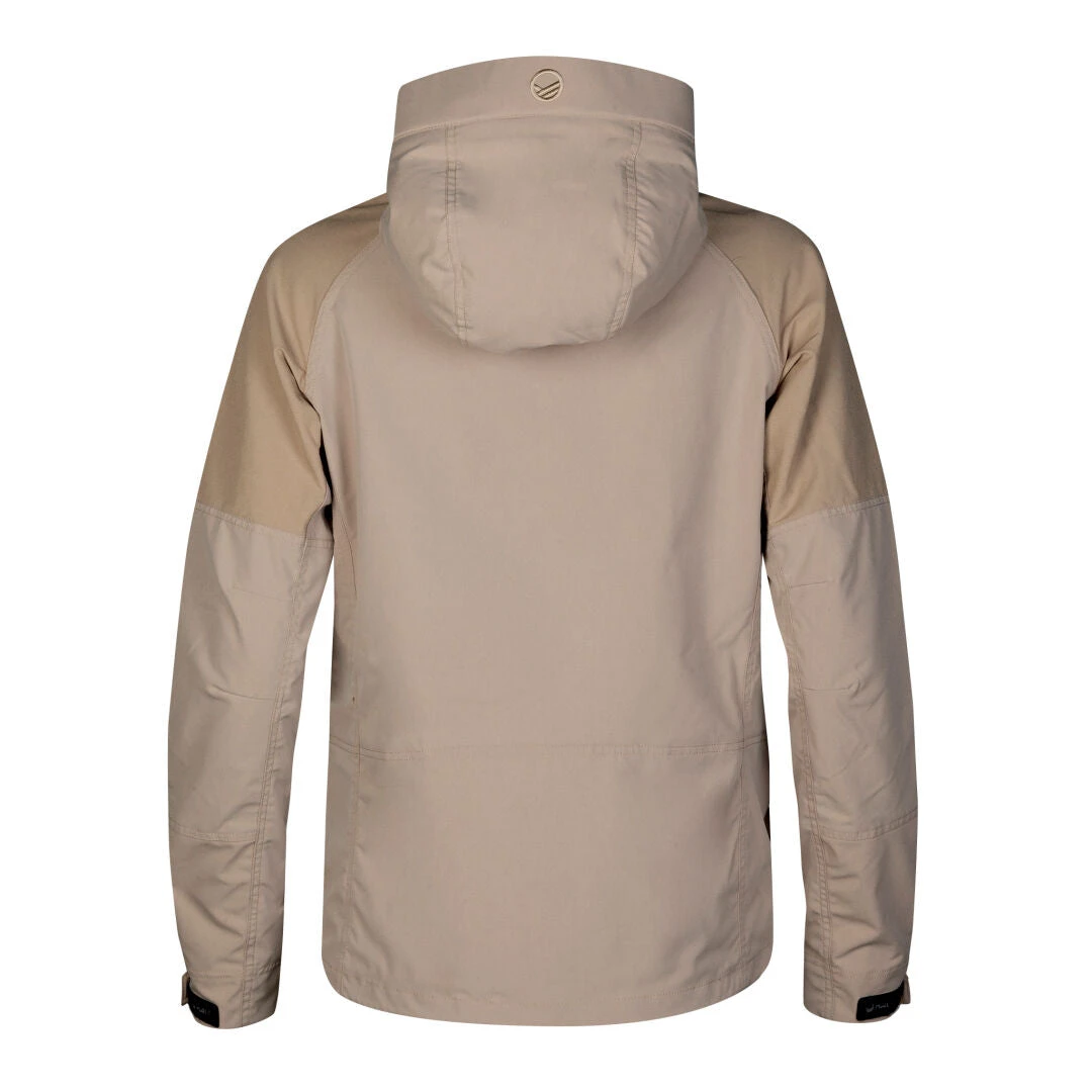 Takin materiaali on yhdistelmä kierrätettyä nylonmateriaalia ja kulutusta kestävää ripstop-materiaalia. Takki on kalvoton mutta on DWR-käsitelty, jonka ansiosta takki on vettähylkivä. Takin tuulenpitävä ja erittäin hengittävä materiaali antaa suojan sateen yllättäessä. Takissa on runsaasti taskuja, säädettävä huppu, helma ja hiahansuut.