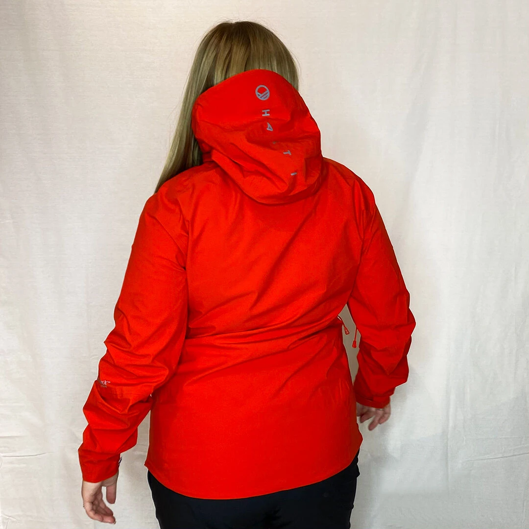 Takissa on vedenpitävä ja 50% kierrätetty DrymaxX® Ultimate -kalvo, joka on hyvin hengittävä ja joustava materiaali. Kevyen 3-kerros materiaalin ansiosta takki pakkautuu helposti pieneen tilaan ja on helppo pakata mukaan reppuun tai laukkuun.
