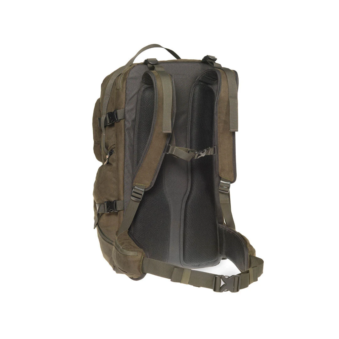 Metsästysaseesi saat kulkemaan näppärästi repun etuosassa, josta löytyy oma pussitasku aseen perälle. Piippu työnnetään repun etuosassa sijaitsevien taskujen alle, jolloin ase kulkee tukevasti mukana. Repun sivuilla kompressioremmit ja paljon kiinnikkeitä. Omat taskut mm. puukolle, panoksille ja termospullolle. Erittäin tukevat olkahihnat ja rintaremmi sekä pehmustettu lantiovyö, jossa vetoketjutaskut.
