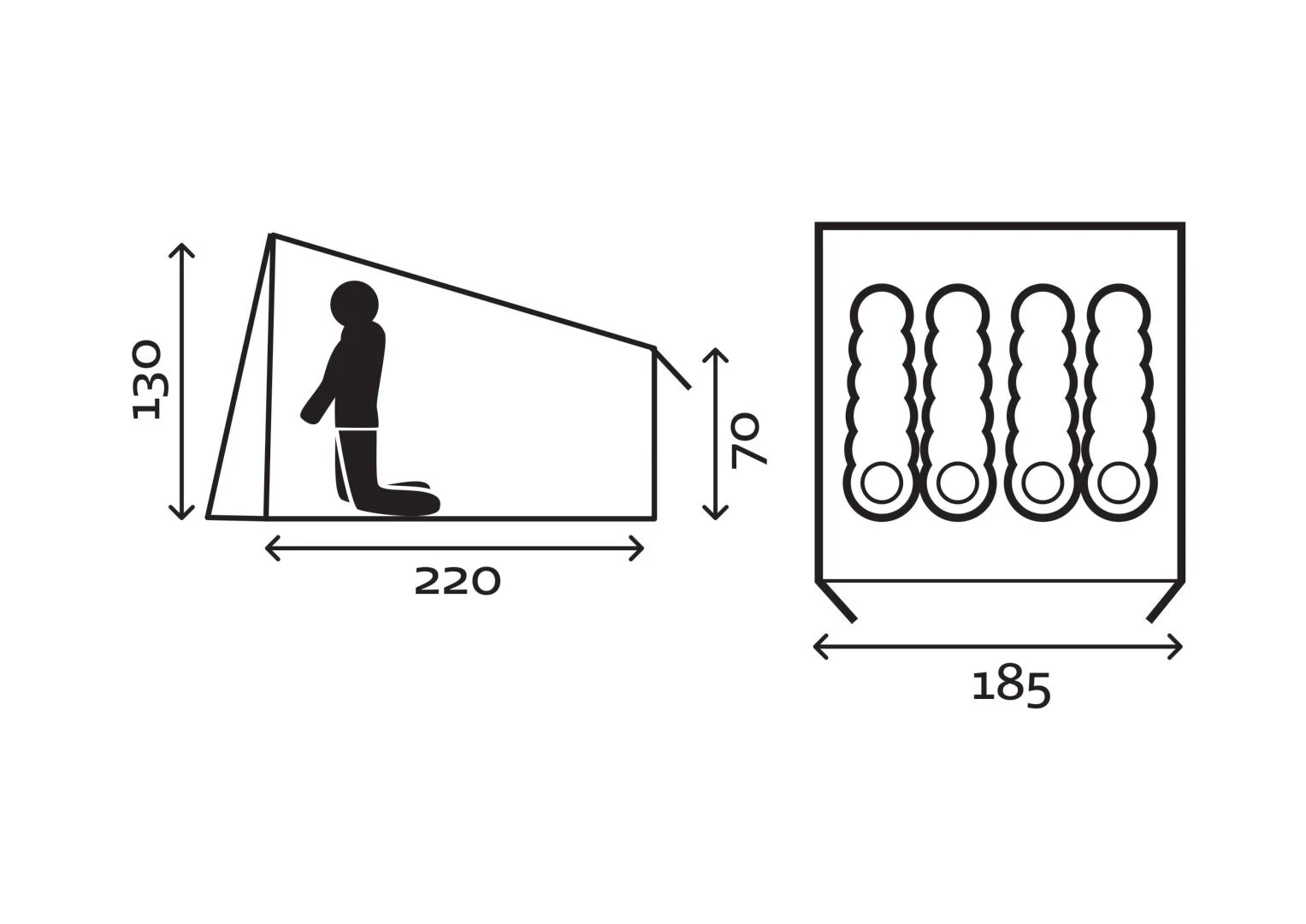 - Mitat: 185x220x130