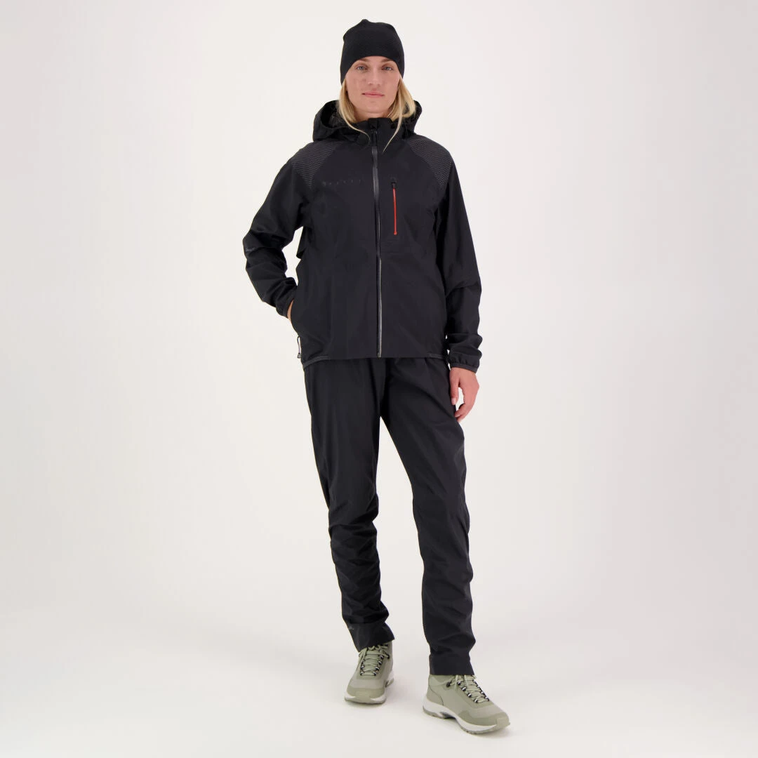 Säädettävät lahkeet, jotta kangas ei mene ketjujen väliin tai lepata tuulessa sekä kulutusvahvike istuimen kohdalla tekevät näistä housuita täydelliset aktiiviseen pyöräilyyn. Turvallisuutta syksyn ja talven pimeällä tuovat heijastavat yksityiskohdat. Housujen kankaassa on käytetty kierrätettyä polyesteriä.
