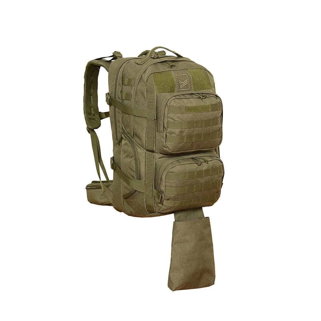 Repun ulkopuolisten pussien kiinnittäminen mahdollistuu MOLLE -hihnaston ansiosta. Hihnasto kulkee jokapuolella reppua, joten mahdollisuudet haluamasi lisäosien sijoitteluun ovat lähes rajattomat. Kokonaisuudessaan 42 litrainen tilaihme, jossa itsessään taskuja ja osastoja yhteensä 16kpl, paino 1,9kg.