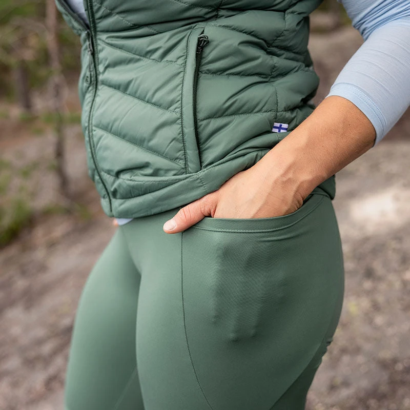 Trikoissa on korkea vyötärö, kapeat lahkeet, Halti-joustonauha sekä 2 pujoitustaskua. Trikoot ovatkin mainio valinta kaikenlaisiin ulkoilun aktiviteetteihin.