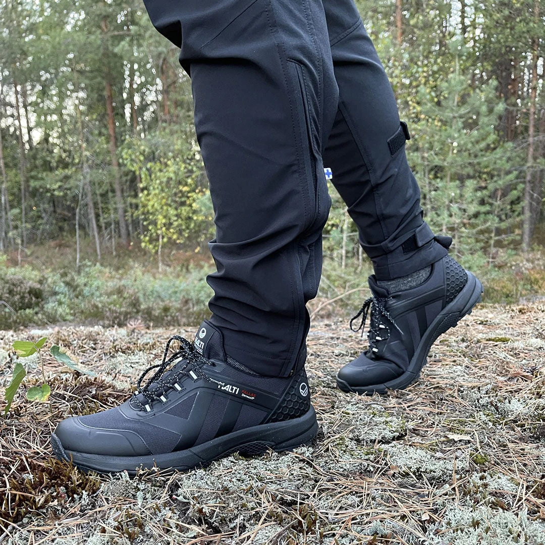 – Materiaalikoostumus: 100% PU - Ulkopohja: Halti GripmaxX Trail: kanta- ja päkiävaimennetty välipohja, kiertojäykkyystuki ja kuminen ulkopohja