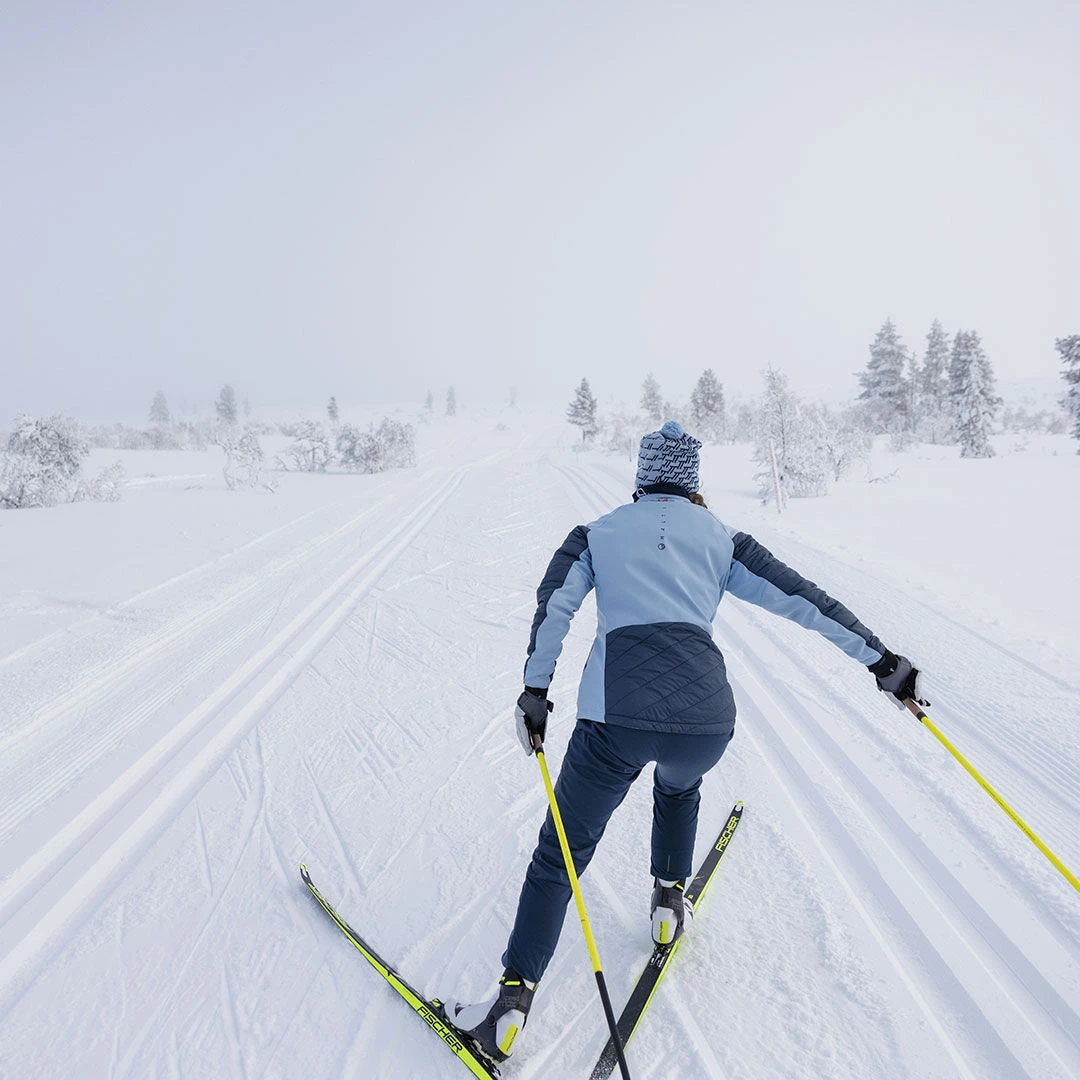 Tripla hybrid housut soveltuu erinomaisesti maastohiihtoon ja talvijuoksukäyttöön. Housut ovat korkeavyötäröiset ja sisältävät henkselit jotka saa irroitettua.