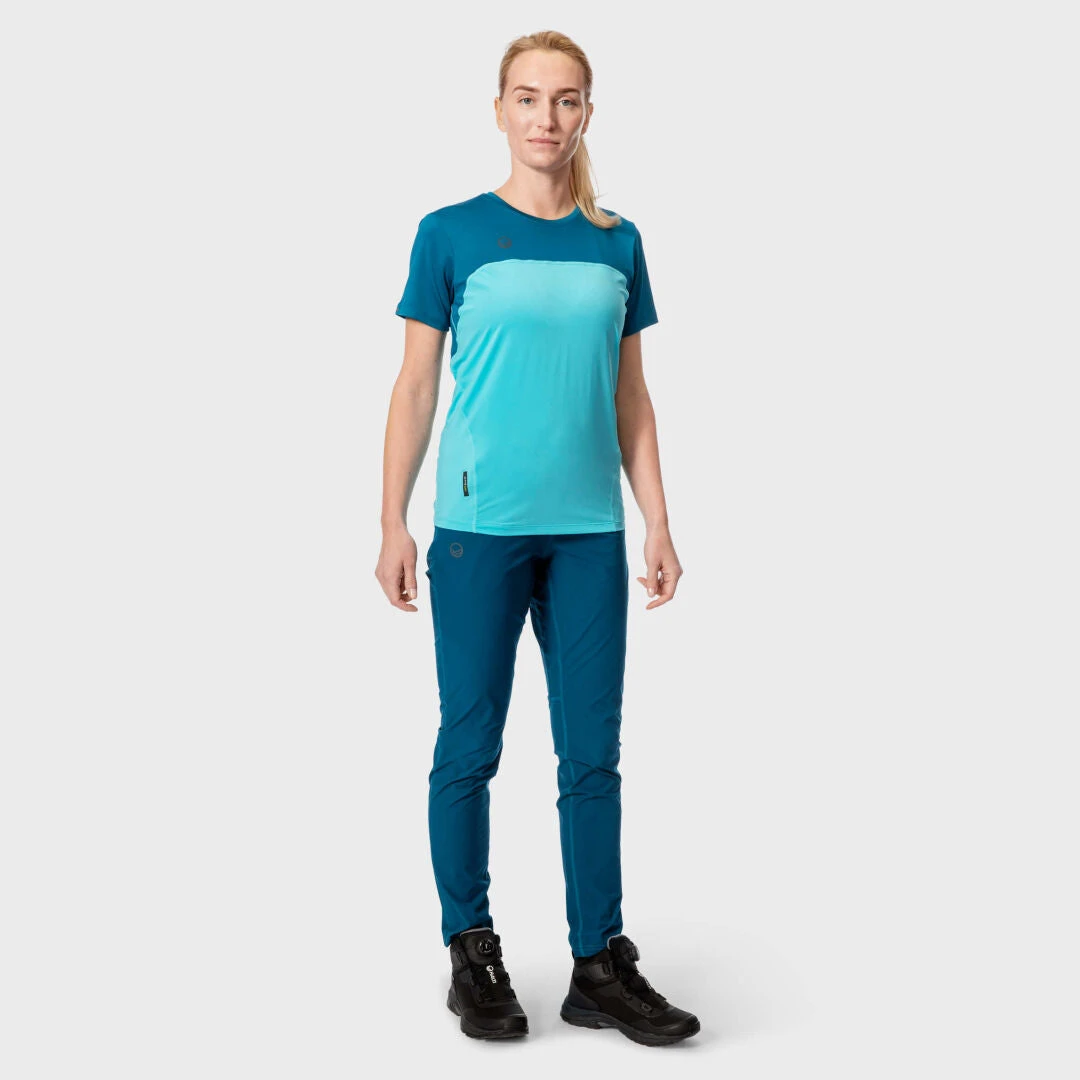 Naisten kevyt, lyhythihainen T-paita treeniin ja vapaa-aikaan. Paidan materiaali on tekninen, joka joustaa ja on ihanan pehmeä ihoa vasten. Klassinen malli, jossa on lyhyet hihat ja pyöreä pääntie.